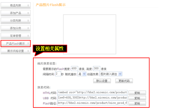 6、产品FLASH属性可以设置
